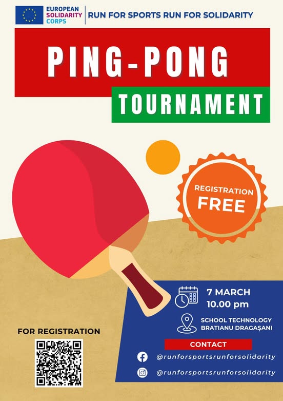 Get ready for an action-packed Table Tennis Competition happening on March 7th at 10:00 AM at School Technology Bratianu Drăgășani!